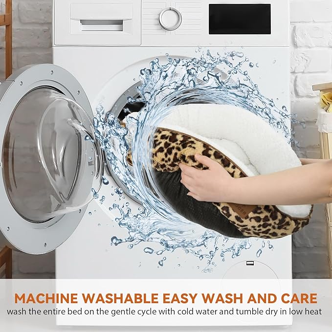 Cat Bed, 20In Dog Beds for Small Dogs, Calming Cat & Dog Beds for Indoor Pets, Pet Beds Comfortable Donut Round Ultra Soft (Leopard, Medium 23in)
