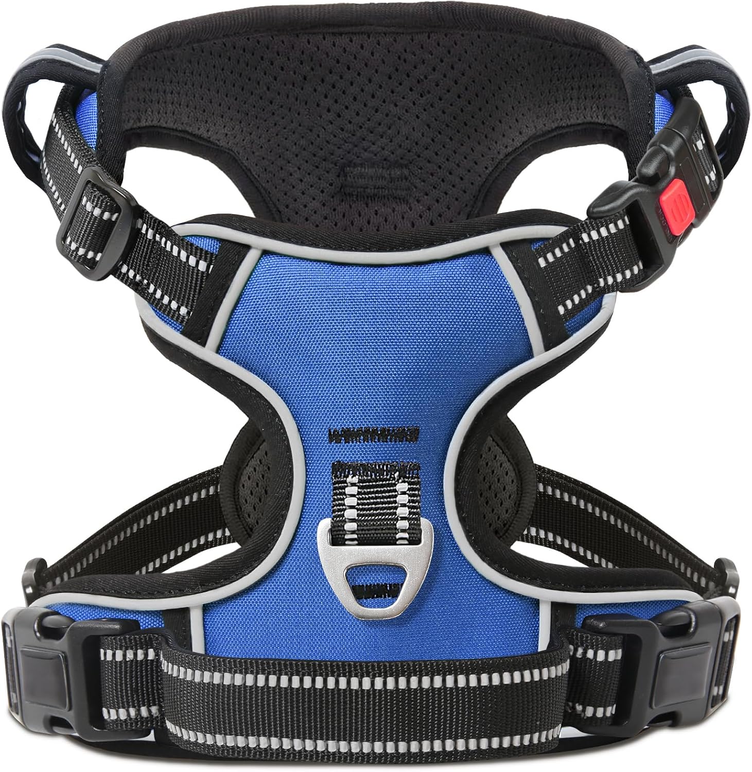 Timos Dog Harness, No Pull Dog Harness 3 Snap Buckles Adjustable Reflective No Choke Pet Vest for Small Dog with Soft Padded Control Training Handle for Outdoor Training,Lock Blue, S