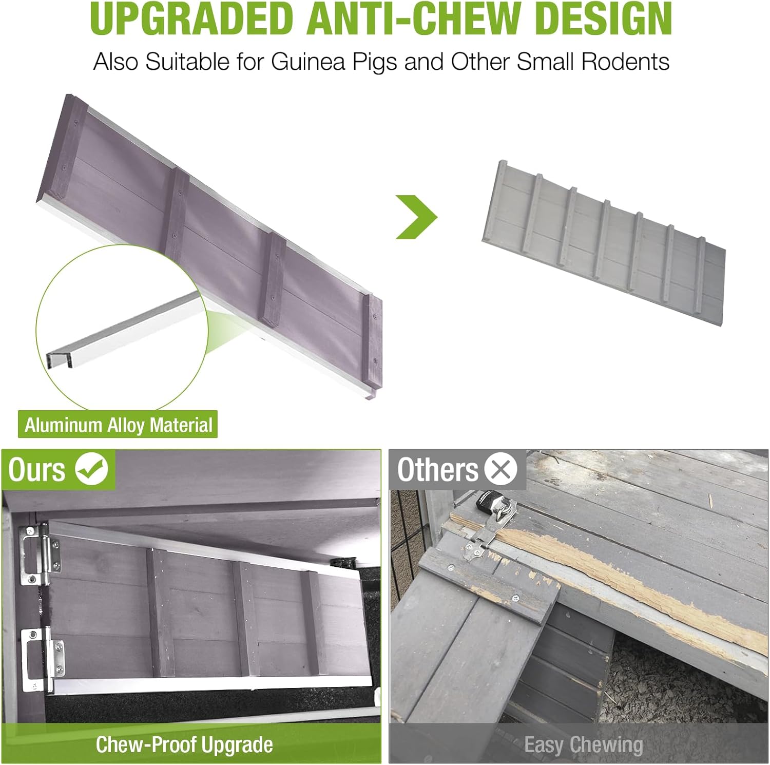 - Robust & Long-Lasting: Our rabbit hutch features a solid wood and reinforced aluminum alloy frame to resist damage and chewing, ensuring long-lasting protection.