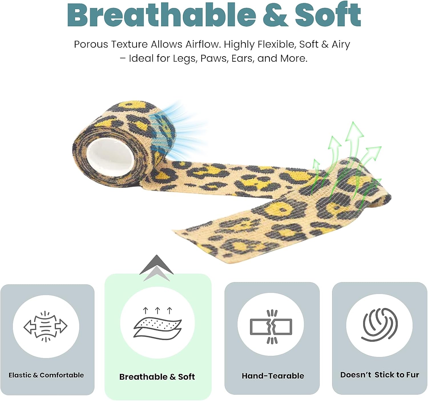 - 【Breathable & Comfortable Material】 Made from mesh-textured elastic non-woven fabric, this vet wrap for dogs offers superior breathability and comfort. It allows airflow to promote healing while keeping your pet comfortable and active during recovery.