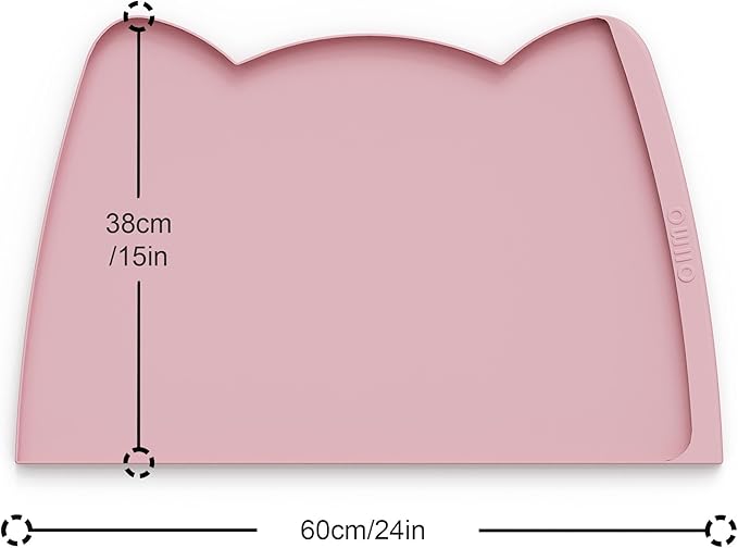 OHMO Dog Food Mat(Pink, 24 * 15'') w/Residue Collection Pocket Silicone Pet Feeding Mat for Floor High Edges Anti Spills Waterproof Cat Water Bowl Tray, Easy Clean Placemat