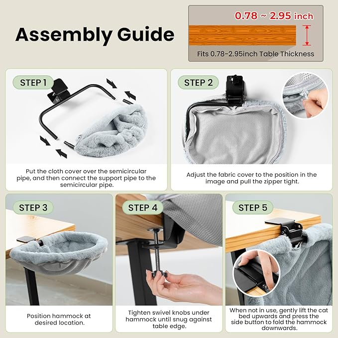 - 【Sturdy and Multi-desktop Suitability】The maximum weight of the desk cat bed can reach 40 pounds, which ensures stability even if the cat jumps in, and is suitable for cats of various sizes. Suitable for all kinds of desktops, you can find the most suitable installation method regardless of your office environment