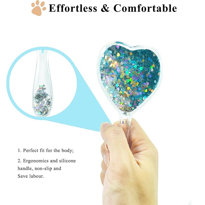 Small Dog Brush, Soft Brush for Shih Tzus, Yorkies, Maltipoos, Maltese, Love Shape Puppy Massaging Hair Comb for Small Dogs Cats Rabbits of All Hair Types (Glitter Blue)