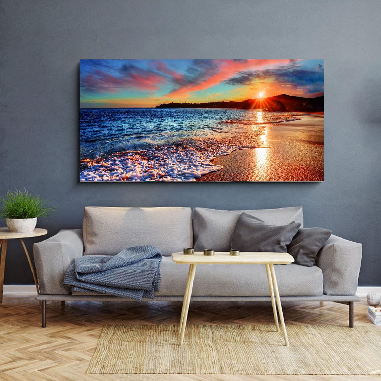 Yxbhhym-Large Pictures for Living Room Wall Art Sunset Beach Artwork for Wall Coastal Room Decor Ocean Canvas Wall Art Seascape Print Painting Sea Poster Bedroom Wall Decor Office Home Decoration