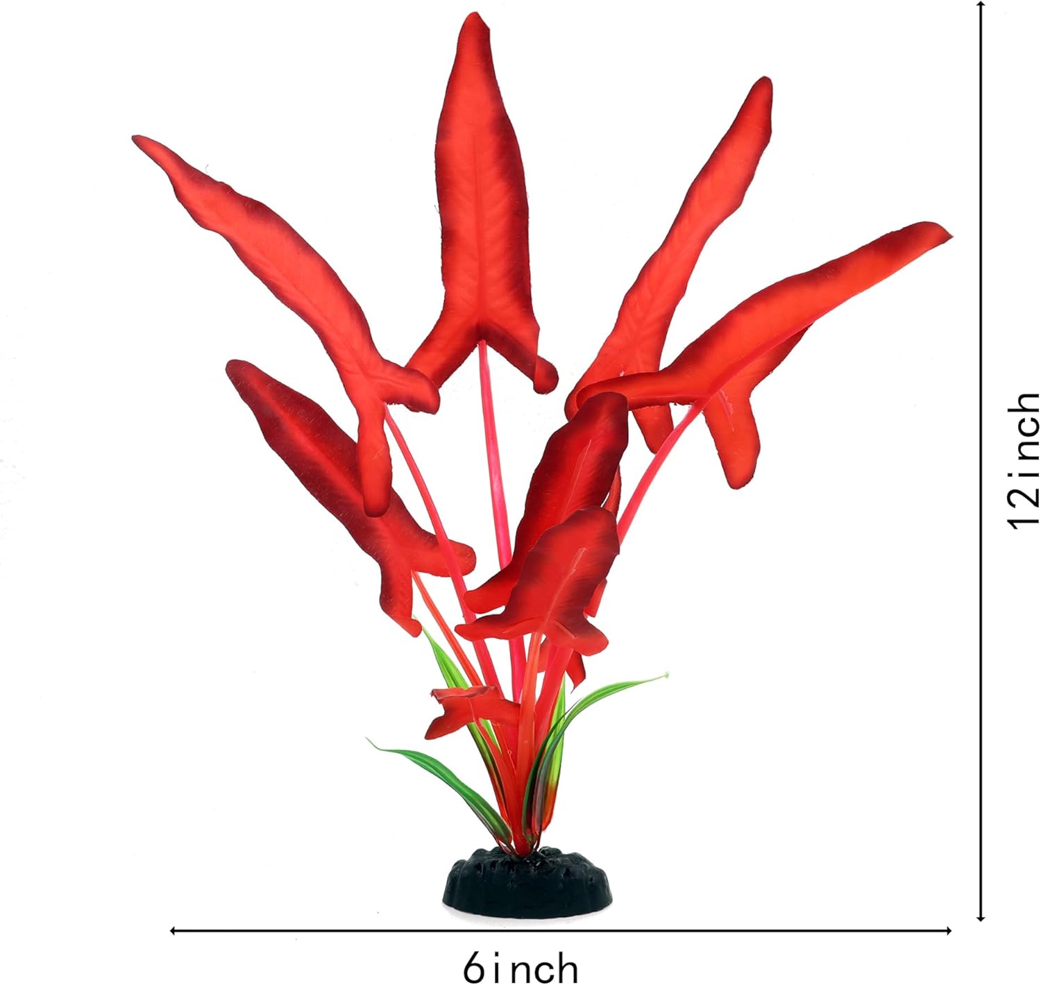 2-Pack 12 Inch Aquarium Silk Aquarium Plants, Artificial Plastic Plant for Small Tank, Goldfish, Fish Hides,Dark Red