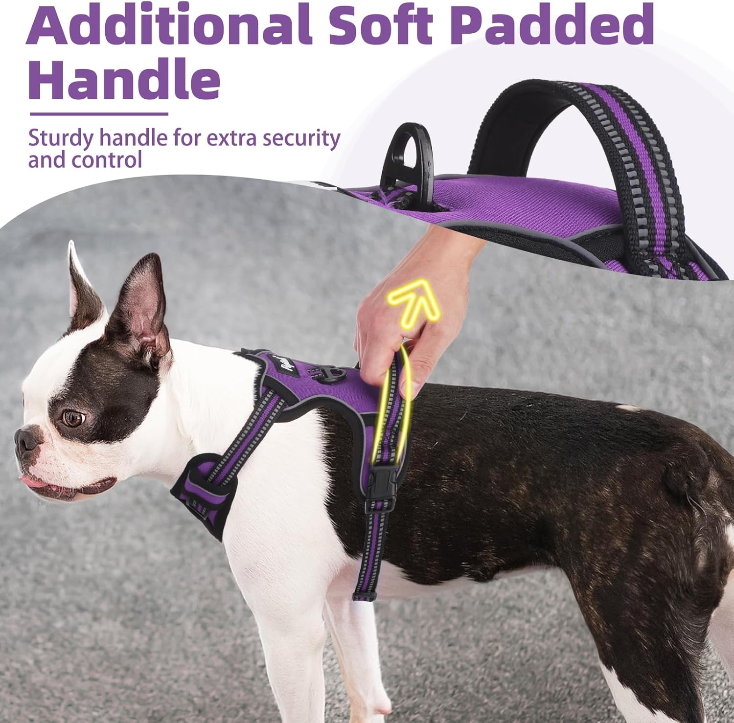PUPTECK No Pull Dog Harness for Large, Adjustable Reflective Dog Harness with Handle Easy Control, Comfortable Soft Padded Pet Vest Harness for Large Dogs, Solid Purple L