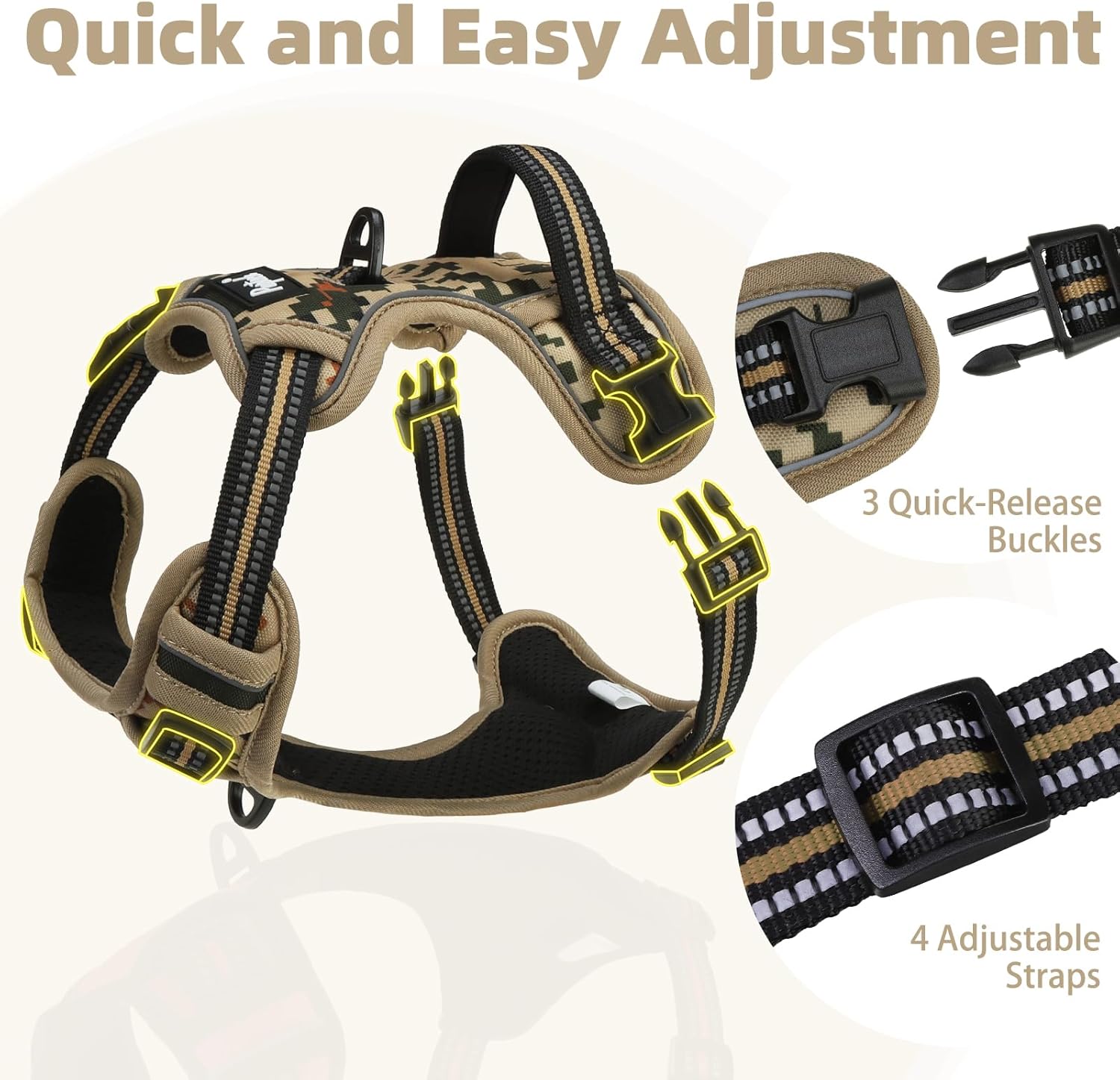 PUPTECK No Pull Dog Harness Medium Sized, Adjustable Reflective Dog Harness with Handle Easy Control, Comfortable Soft Padded Pet Vest Harness for Medium Dogs, Camouflage M