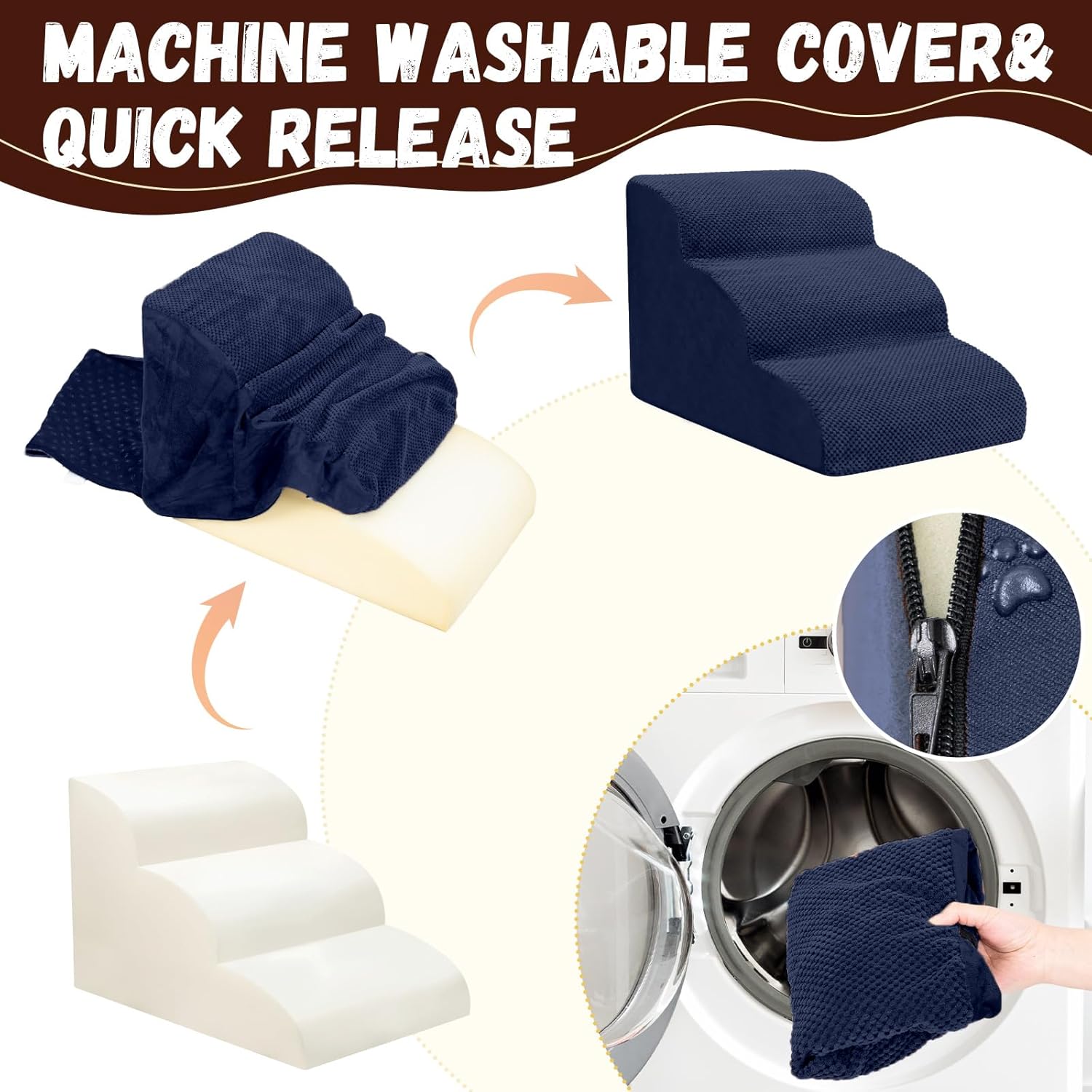 - Easy to Install and Clean: This pet step can be assembled and disassembled through simple steps. It is easy to clean. You can wash the removed cover by machine to keep the pet step clean and tidy