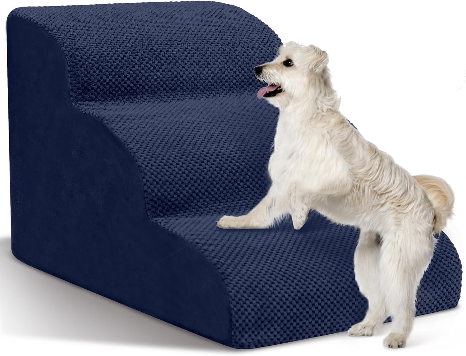 Dog Stairs for Small Dogs - High Density Foam Pet Steps, Extra Wide Dog Ramp with Non-Slip Bottom for High Beds, Couch and Sofa, Best for Dogs Injured, Older Doggy Cats, 3 Steps, Navy