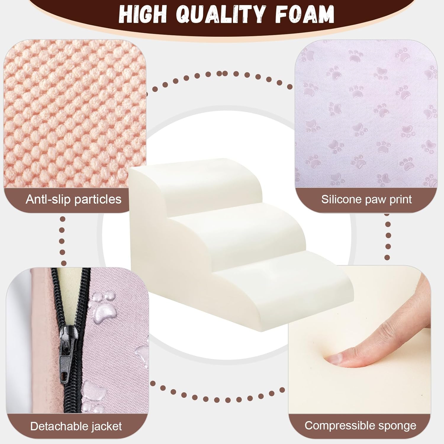 - Double Sided Anti Slip: The dog steps cover is made of corduroy with greater friction than other fabrics, which provides extra grip while in use, the bottom features nonslip rubber dots, preventing pets from sliding while climbing, providing pets with double safety protection