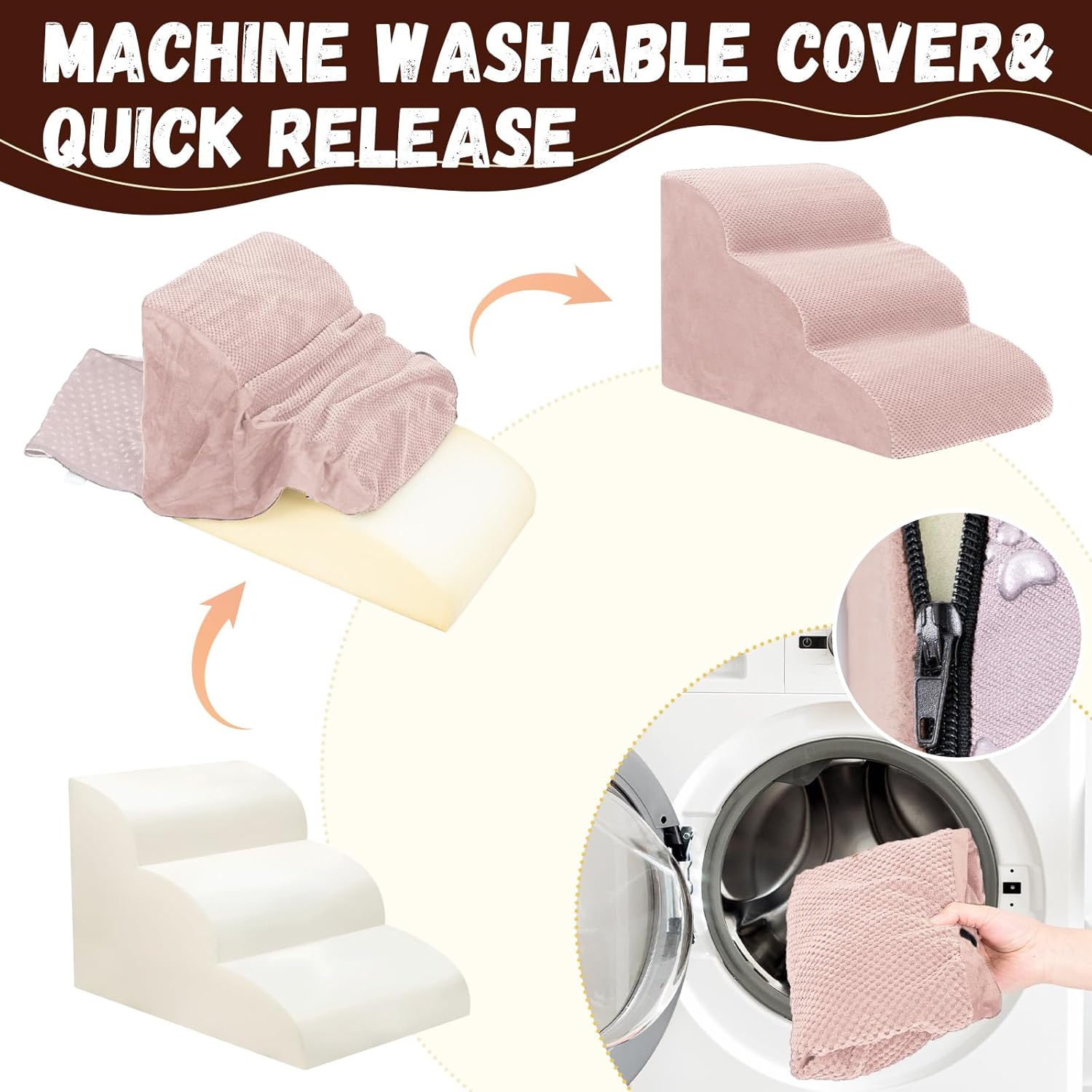 - Easy to Install and Clean: This pet step can be assembled and disassembled through simple steps. It is easy to clean. You can wash the removed cover by machine to keep the pet step clean and tidy