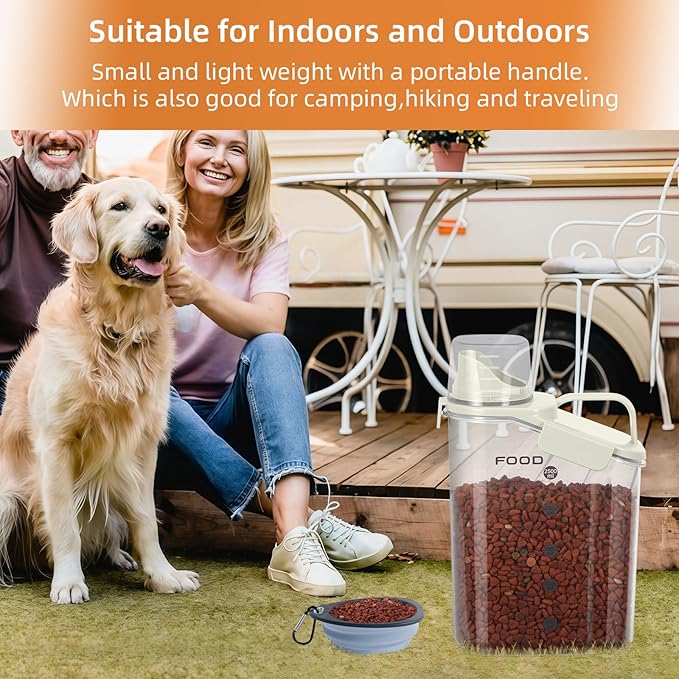 - FUNCTION : This airtight dog food container with portable handle has an airtight design,-has 2 silicone seals and 4 sealing buckles,which can keep your food dry and fresh, the portable handle and large spout design can easily Easily pours food out,also perfect for traveling, hiking, camping or picnicking with your dog