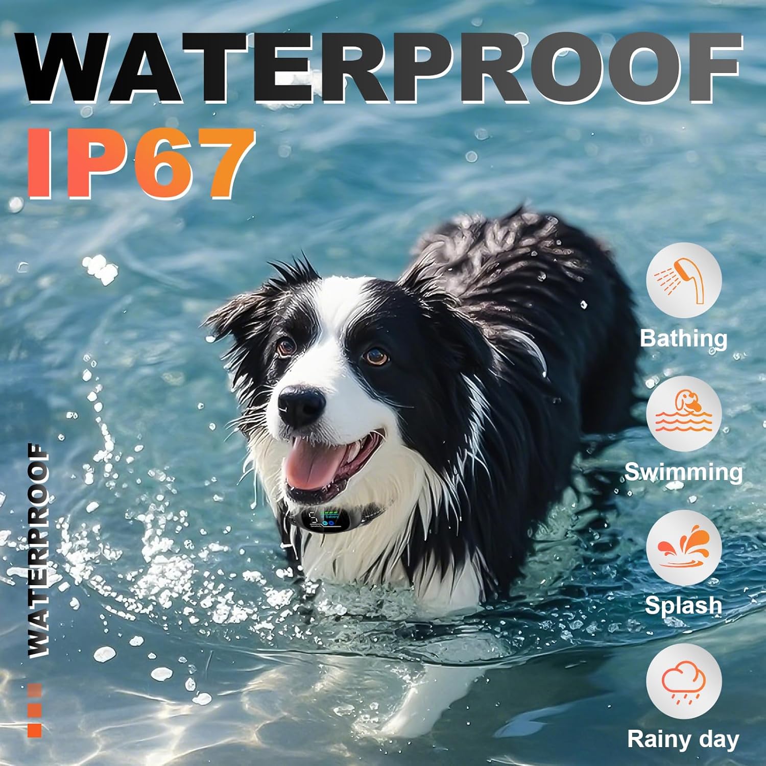 - 【Upgraded Smart Barking Recognition Chip and Waterproof Design】 The dog electronic collar is equipped with a "seventh-generation" intelligent barking recognition chip, which is more sensitive in detecting barking sounds. The sensitivity of this smart dog collar has 5 adjustable levels, allowing you to choose the appropriate sensitivity for different environments. The training collar is designed with IP67 water resistance, so you don't need to worry if your dog wears it while bathing, running in the rain, or playing by the seaside