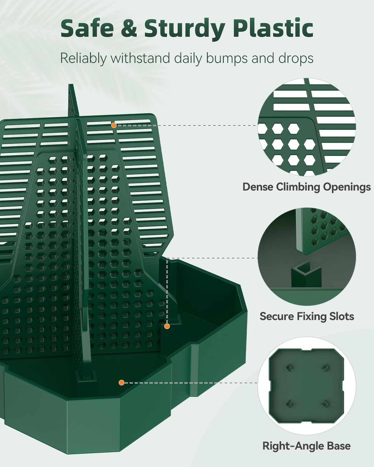 - Climbable & Stable: Dense climbing grids and slots on the bearded dragon feeder transform feeding time into an exciting hunting adventure! The right-angle base sits perfectly in any terrarium corner, ensuring exceptional stability during every meal
