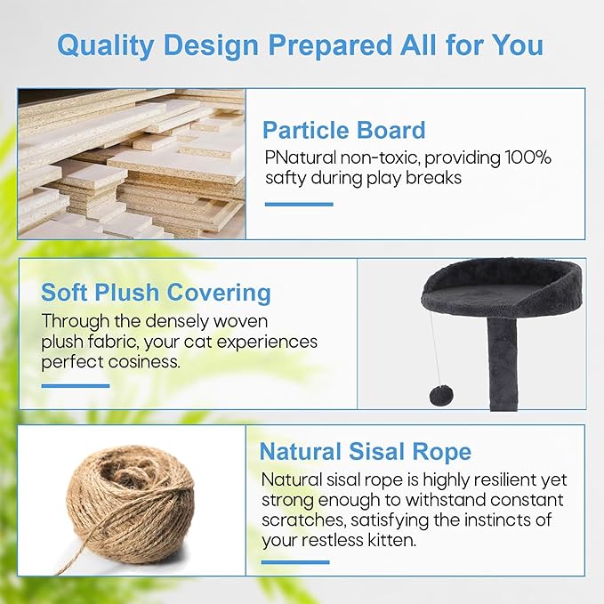 - 🐱 【Simple assembly】We understand that convenience is important to pet owners, which is why we made our cat tree simple to assemble in a matter of minutes. You can quickly provide your kitties a stimulating environment by following the simple setup instructions and using the available tools. Please feel free to contact us with any questions you may have about our cat tree, and we will respond to you within a day! You can quickly provide your kitties a stimulating environment by following the simple setup instructions and using the available tools.