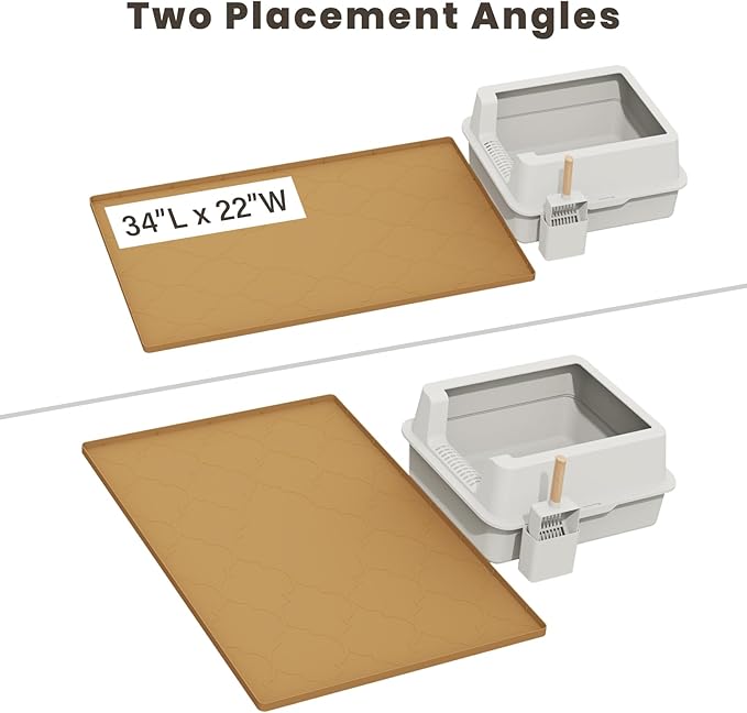 Cat Mat for Litter Box, 34" X 22" Large Silicone Cat Litter Trapping Mat, Easy Clean for Scatter Control, Soft on Kitty Paws, Waterproof, Urine-Proof, Non-Slip Kitty Litter Mat for Floor, Brown