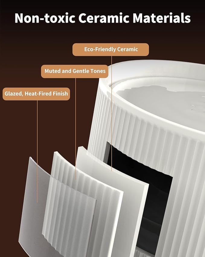 - [Safe & Non-Toxic Ceramic Material]: Made of high-quality natural ceramic, this cat water fountain is BPA-free, eco-friendly, and safe for your pets to drink from every day.