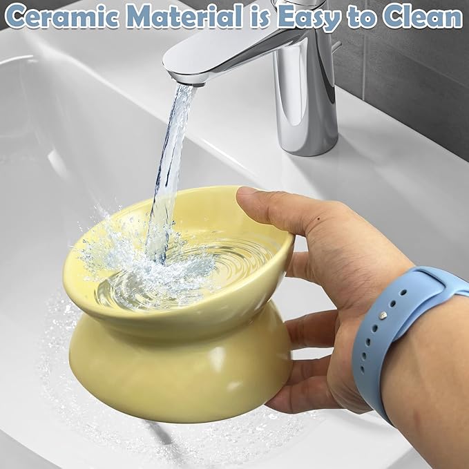 - Raised Pet Feeding Bowl: The elevated pet bowl can effectively less vomiting.The elevated bowls put a cat's mouth at a suitable position in relation to its stomach, cats don’t need to bend their heads too much to feed