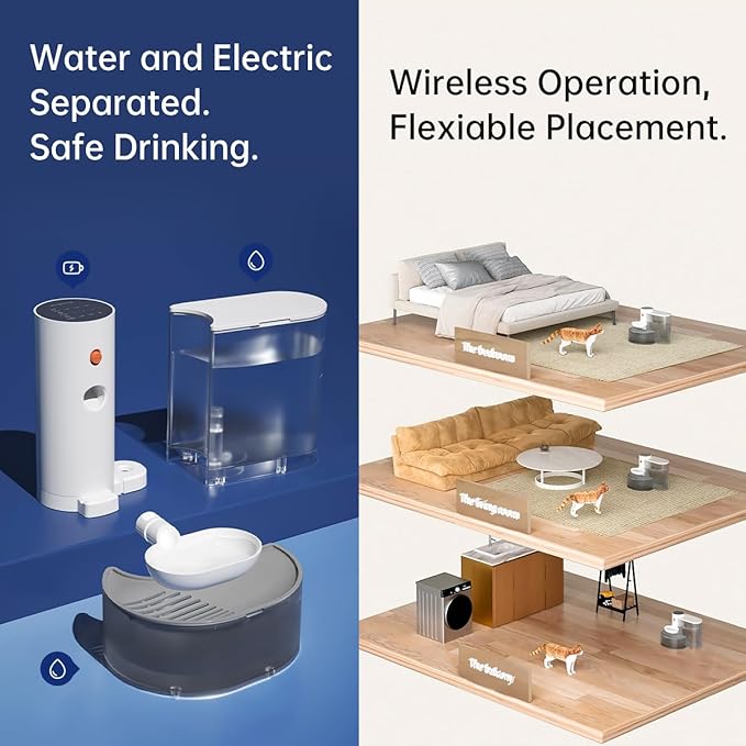 - 【Cordless & Rechargeable for Ultimate Convenience】Enjoy the convenience of up to 180 days of battery life. Free from the limitations of power outlets or cords, our automatic cat water fountain cordless can be placed anywhere, offering exceptional flexibility. USB-C charging ensure pet-safe operation in kitchens, patios, or garages.