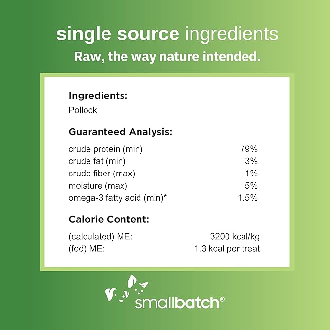 - 100% Single Ingredient Fish Treats: These light, crispy treats for dogs and cats are made from 100% pure Alaskan Pollock. Each Smallbatch Pets treat is freeze-dried to lock in natural nutrients.