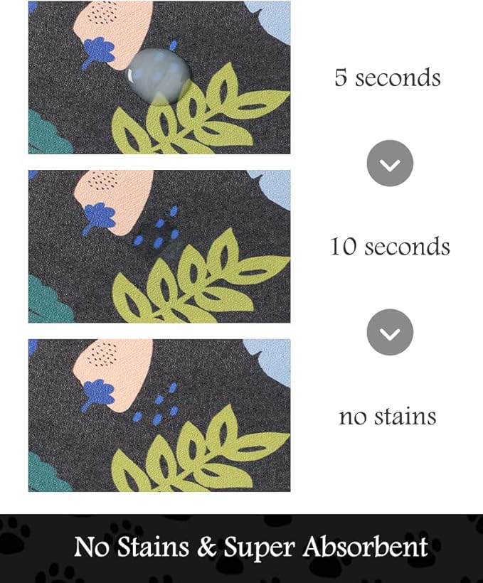 - Super Absorbent & Durable: Perfect pet supplies.This pet food mat can prevent liquid from overflowing. Super absorbent and quick-drying ability to avoid wetting pet paws even for messy drinkers. Sturdy dog & cat food bowl mat cannot be torn easily and avoid eating by mistake. Keep the pet's eating environment tidy and clean.