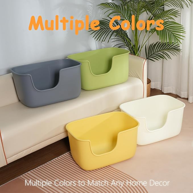 - 【High-Sided Design】This litter box with high sides effectively prevents litter and waste from scattering outside the box. The high sided litter box is especially ideal for cats that tend to kick, offering a cleaner and tidier environment. Its high walls make it a great choice for a litter box large enough to contain messes while keeping your home neat.