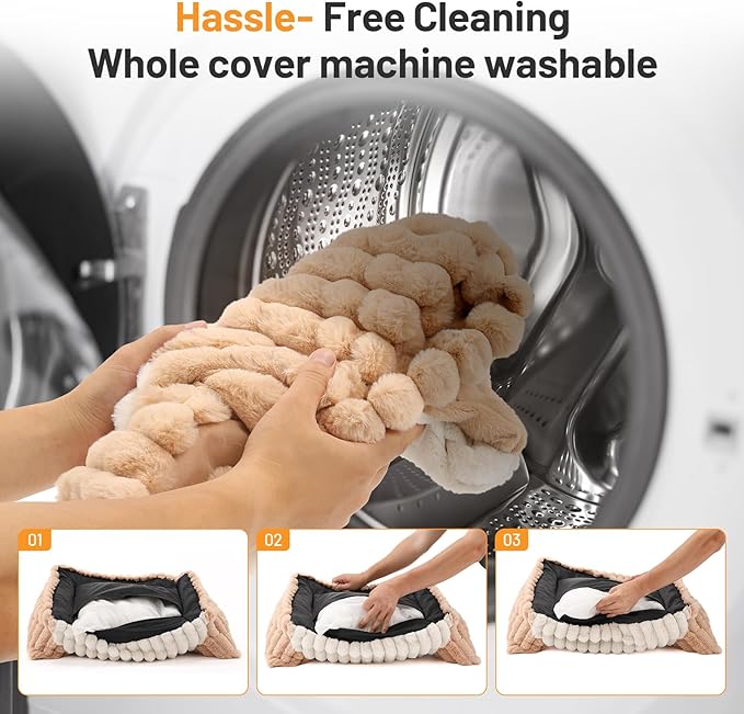 Cat Bed Couch Washable - Fluffy Supportive Pet Chair for Medium Indoor Cat - Large Cozy Dog Bed with Durable Fabric