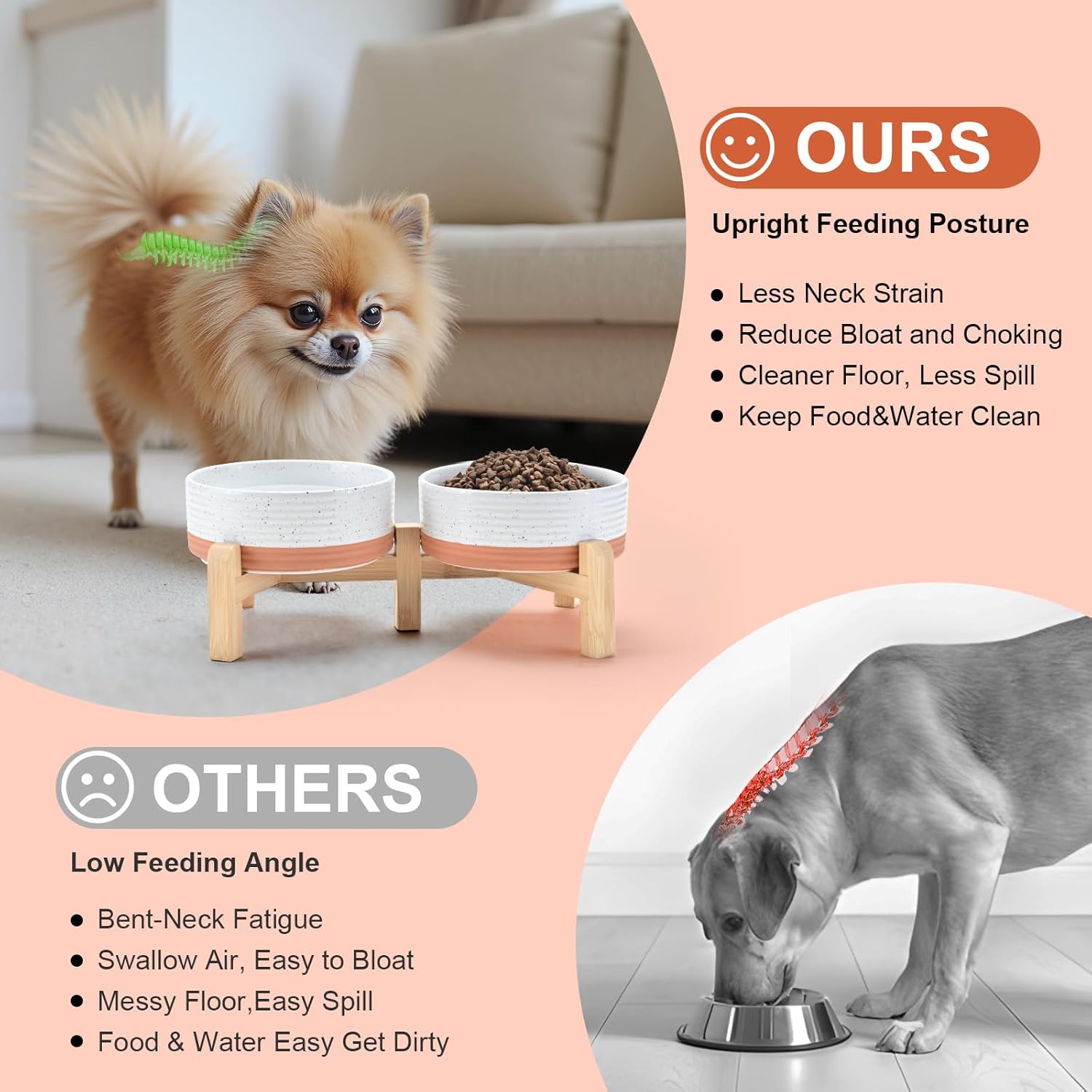 - Stable, Tip‑Resistant Design – A solid bamboo frame with Chew‑Resistant Heavyweight Ceramic, wide stance, and slip‑proof silicone pads join forces to create raised dog bowls that STAY IN PLACE on tile, wood, or laminate. Fewer spills mean cleaner floors and no accidental gouges or scratches or noisy