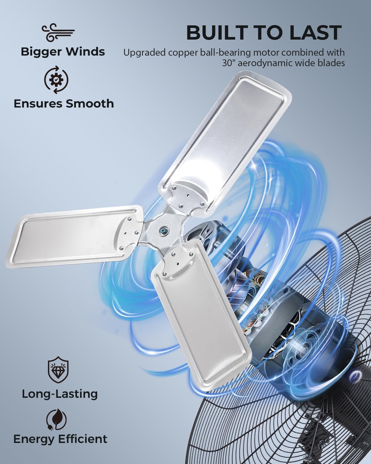 - Easy to Assemble & Use: 30 inch heavy duty oscillating fan included wall mounting hardware for a fast install on concrete walls. Just drill, mount the bracket, attach the blades and grille, and enjoy cooling in under 5 minutes!