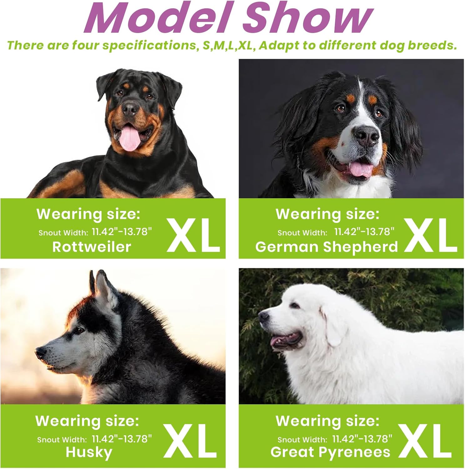 - PLEASE MEASURE BEFORE BUYING:Measure both snout circumference and snout length before purchasing. If your dog's snout length exceeds the size range by about 1 inch, choose the next size up. For long-snout breeds like Dobermans, make sure the snout length fits as well.
