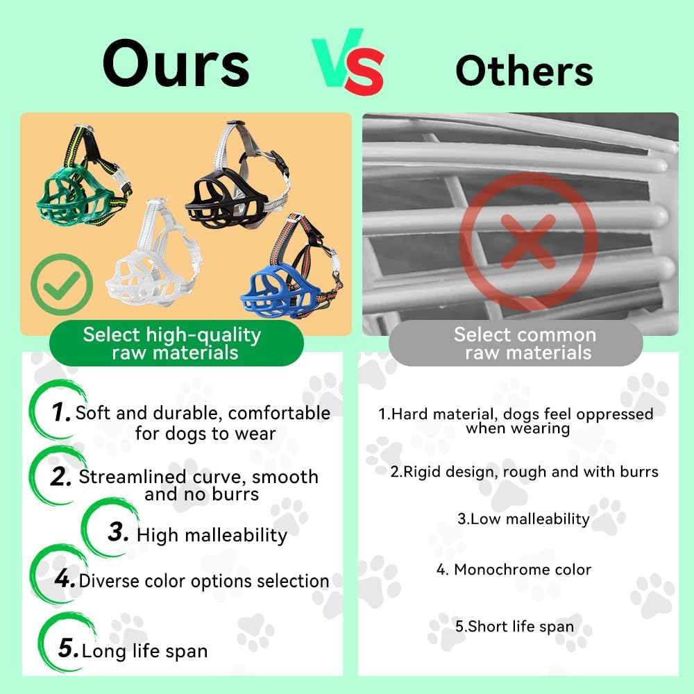 - LIGHTWEIGHT & DURABLE:Made from odorless TPE silicone, this muzzle is lightweight enough for small dogs yet strong and sturdy enough for medium and large dogs, ensuring durability and safety during daily use.