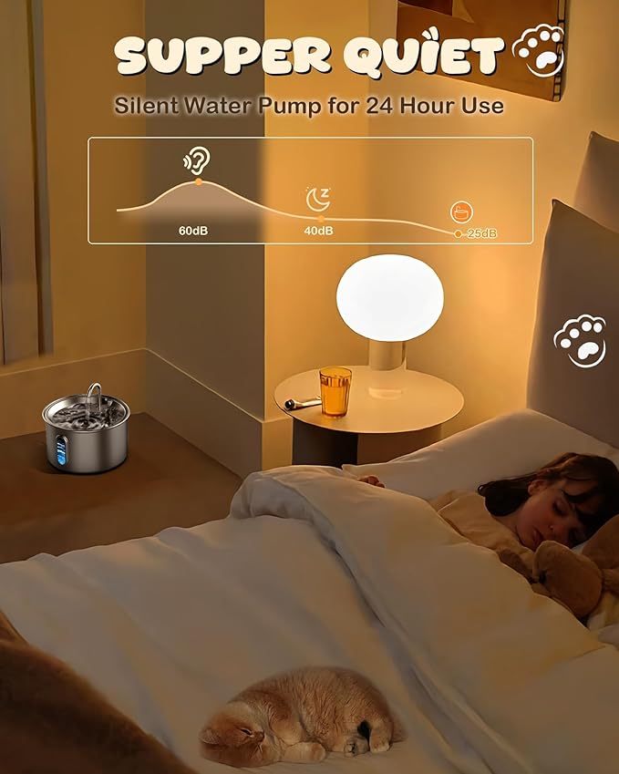 - Alluring Sreaming Water Design: Inspired by cats' natural inclination towards flowing water, our stainless - steel pet water fountain features an alluring streaming water design. This design not only encourages your cats to drink more water, promoting better hydration and reducing the risk of urinary tract problems, but also aerates the water, enhancing its oxygen content and taste. Your cat will be drawn to this refreshing and inviting water source.