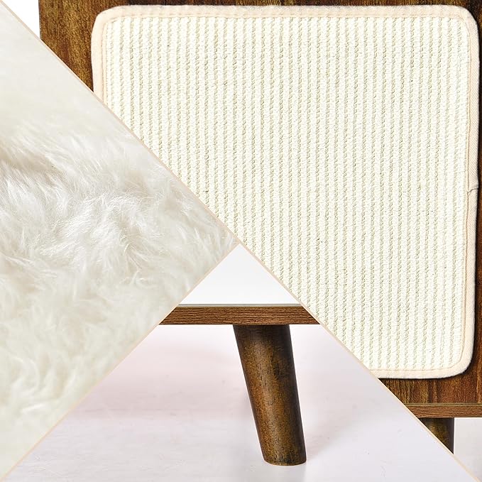 - 【Cat Scratcher&Cozy Cushion】The natural sisal side scratcher allows cats to scratch and protect other furniture. It includes a cozy cushion, giving your pet a warm, safe and soft cat condo.