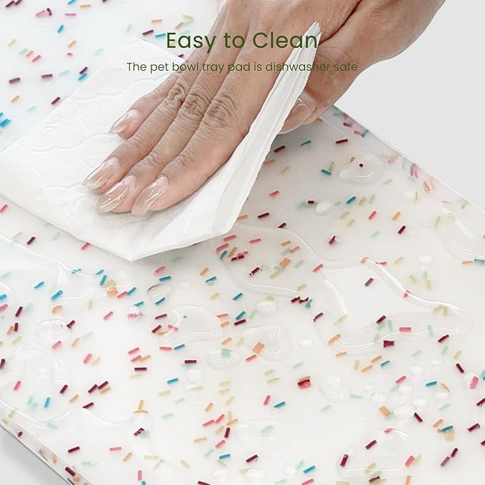 - Easy to Clean - The pet bowl tray pad is dishwasher safe, and this animal feeder mat is soft and stretchy and can be rolled up for storage or taken with you when traveling.