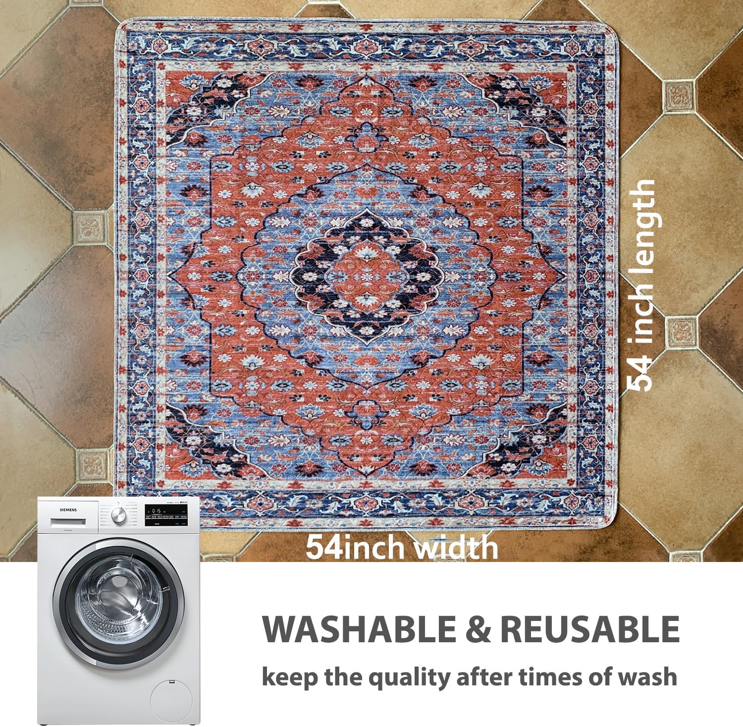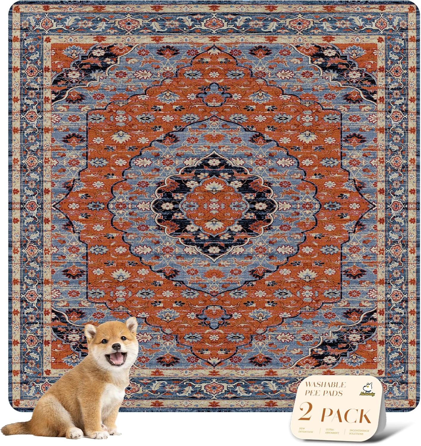 nunubaby Washable Pee Pads for Dogs, Stylish, Non-Slip and Leak-Proof Pee Pads. Reusable Potty Pads for Dogs for Crates and Floors.(Red/Multi, 54" x54")