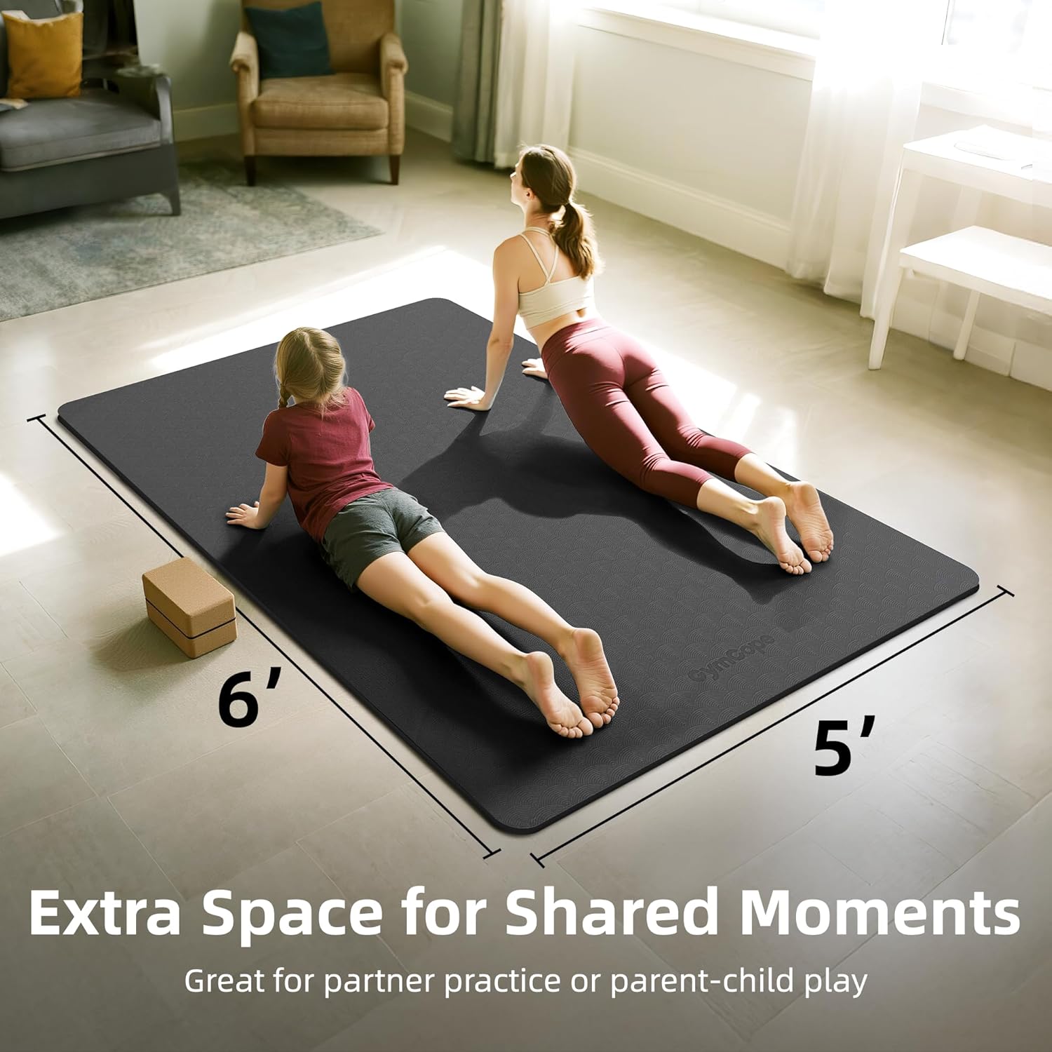 - [Extra Wide 78"x57" – Built for Two. Made for More] Share your space or stretch out solo—this oversized mat is ideal for couples, tall users, or full-body workouts. Nearly twice the width of standard mats, it gives you room to move fully during yoga, pilates, or family fitness sessions.