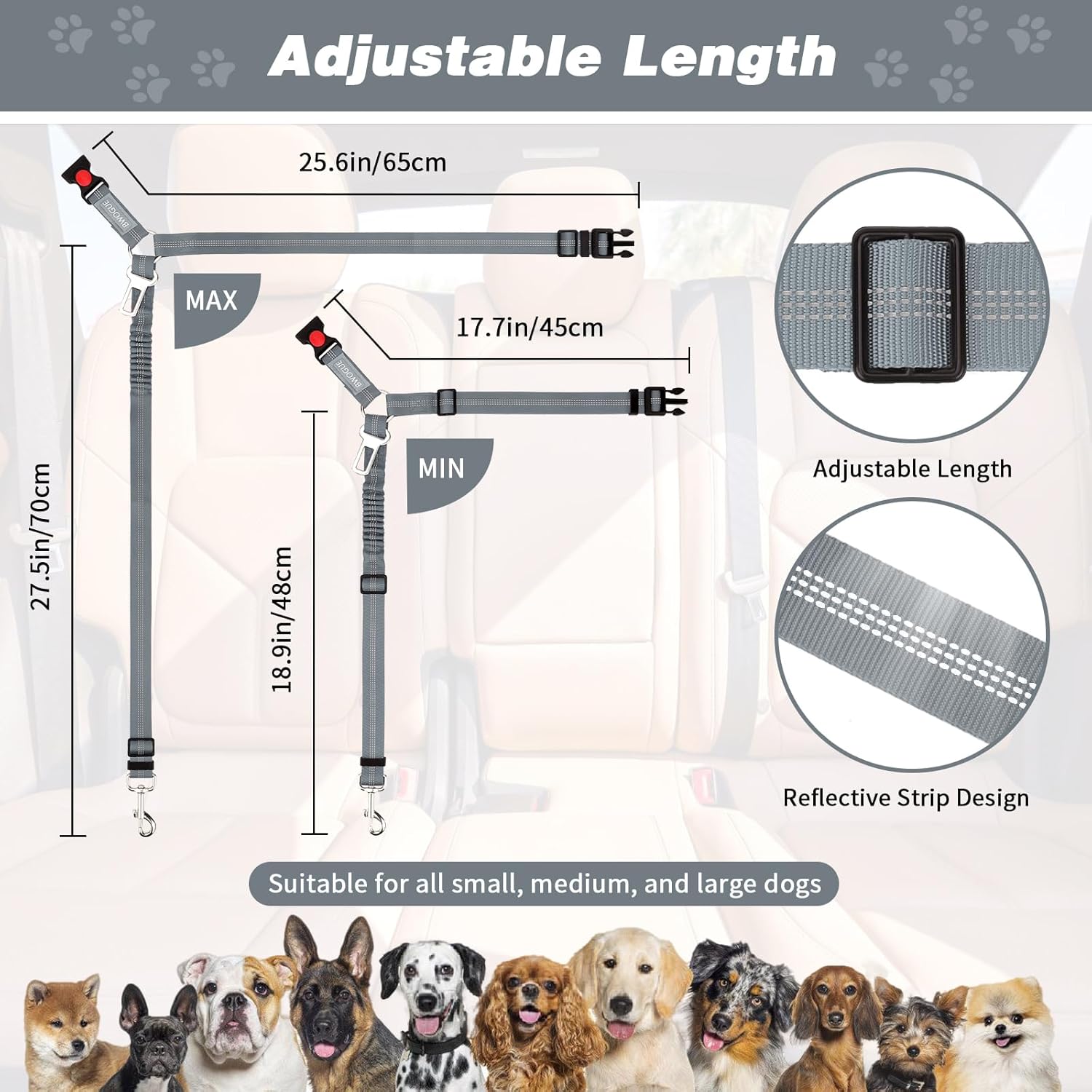 - Twist-free: Our upgraded dog car seatbelt tether with 360° rotating metal buckles can protect your dogs from getting tangled with the strap, either when they sit, stand, lie down in a car or walk, run, and play outside. The dog car seatbelt harness can ensure the safety of your two dogs and allow them to move around more freely. It can also make both you and your dogs feel better
