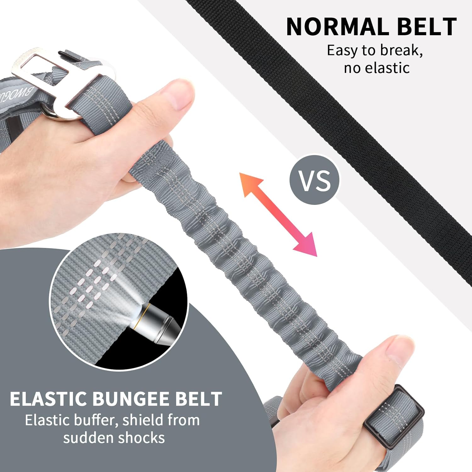 - Durable&Practical: Made of durable nylon fabric to ensure safety, features the solid zinc alloy swivel snap,elastic bungee and high-quality buckles, The reflective stitching design makes it great for night time use. The elastic bungee helps dog prevent jerking with sudden movement. the pet car seat belt ensures the safest traveling for your pet, and provides a most relaxing driving experience for you