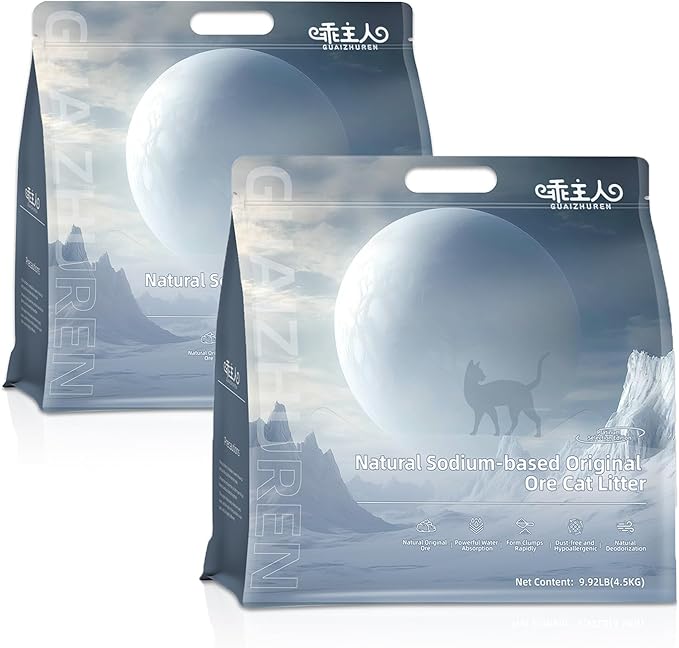 Mineral Ore Clumping Liþer, Natural Sodium-Based Raw Mineral Cat Litter | Dust-Free, Ultra Absorbent, Odor Control | Eco-Friendly, Low Tracking, Clumping Cat Litter (2 * 9.9LBS_Platinum)
