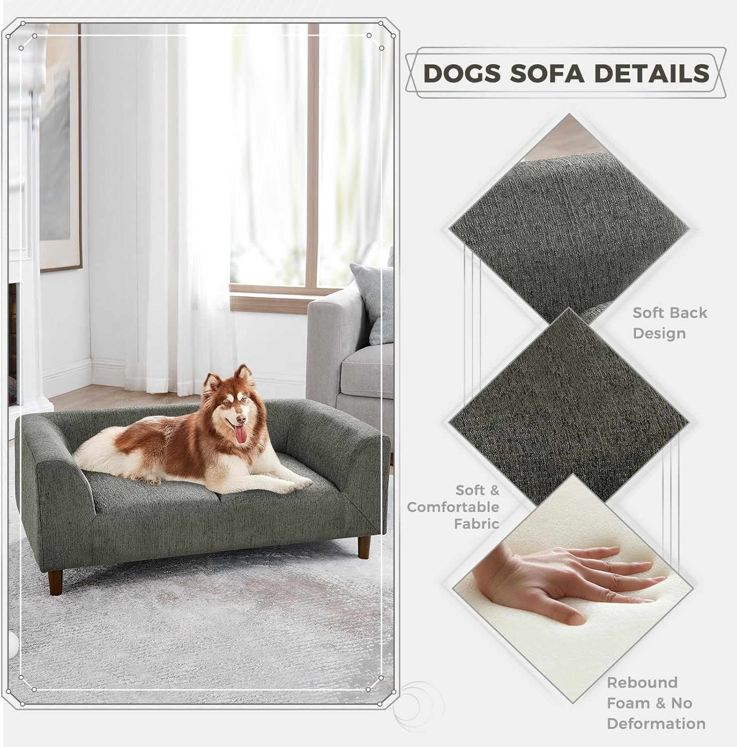 Dog Sofa Couch for Medium to Large Dogs, Memory Foam Dog Sofa Bed, Modern Elevated Pet Couch Bed with Wooden Legs for Medium and Large Dogs, Dark Grey