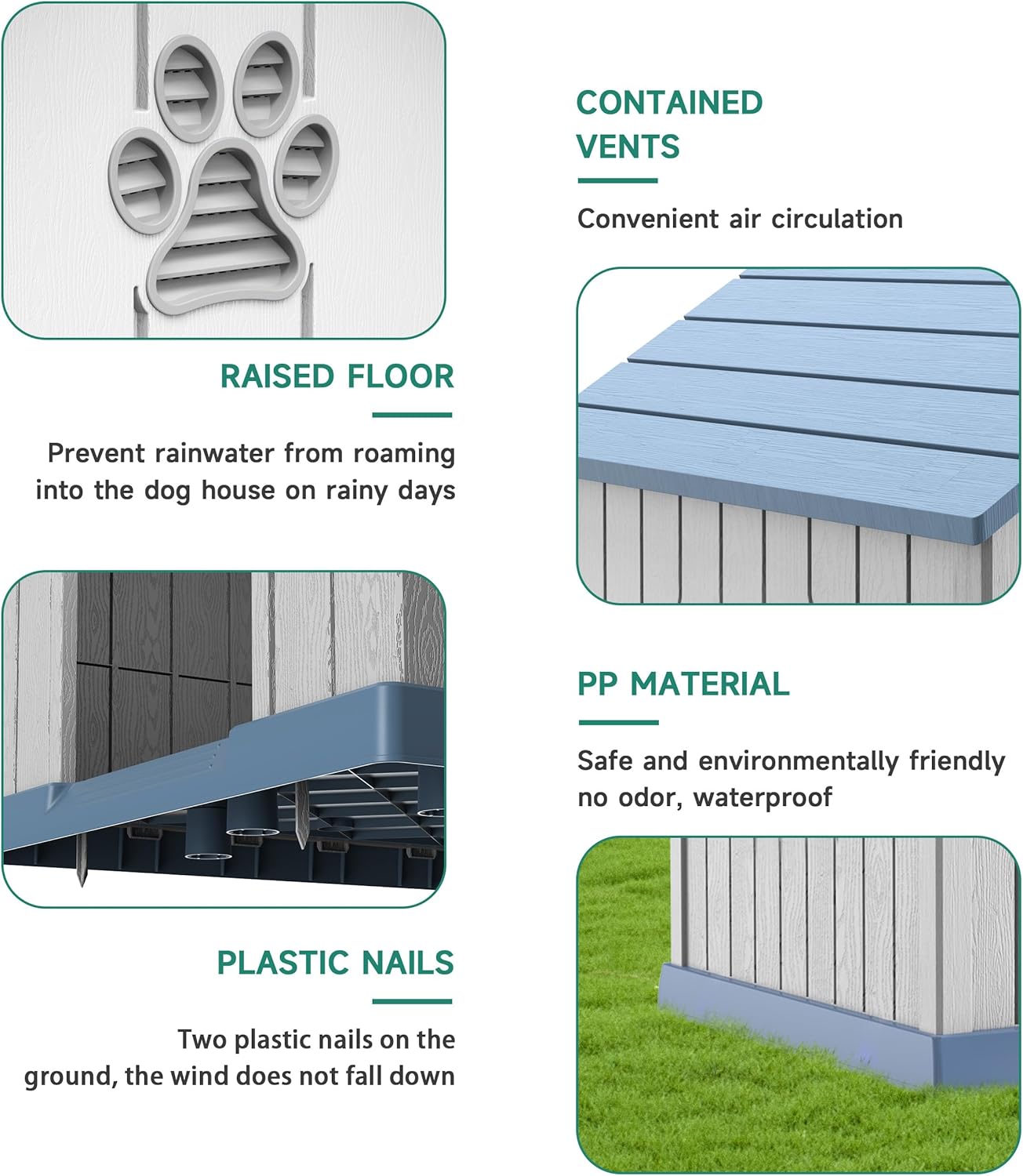 Vixzen 38in Large Outdoor Dog House,Durable Water Resistant Resin Dog House,Doghouse for Small to Large Dogs Indoor or Outside,with Air Vent and Elevated Floor,Blue