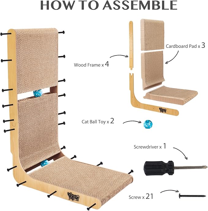 - Stable Structure for Safety Play & Long Term Use: Viraagyiyou Cat scratcher scratching post is made of durable corrugated cardboard, up to 1.6 inches thick, with wooden reinforcements on both sides of the frame for enhanced stability. This ensures a safe play and scratching area for your cat while effectively preventing warping and cracking, even with frequent use. The sturdy pad surface also helps protect your furniture from scratches
