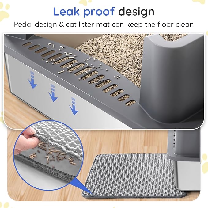 - 【High Sided with Lid】Designed with 12" high sides to effectively prevents litter spill and urine leakage, making it ideal for high-peeing cats,while also protecting your cat's privacy.Featuring unique filtering pedals, which help prevent litter overflow and keep the environment clean.