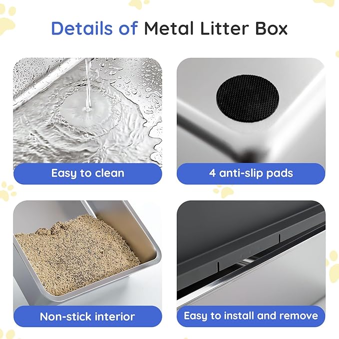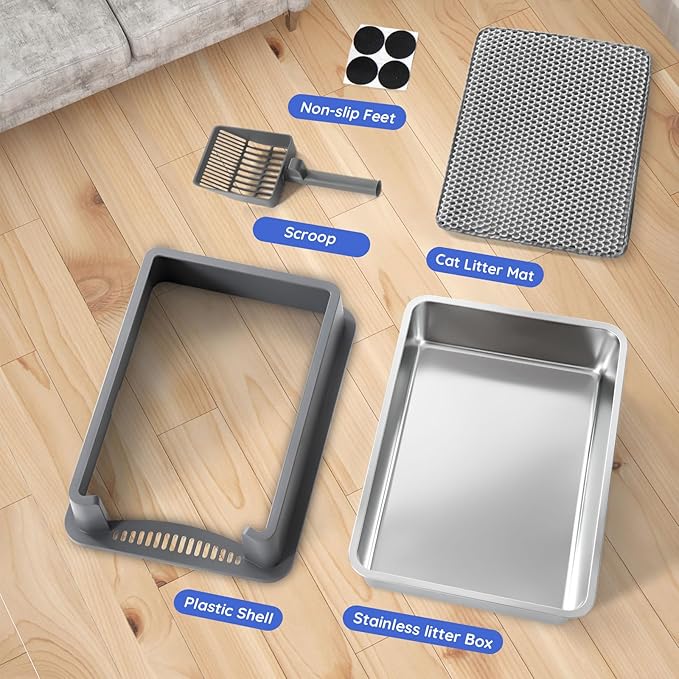 - 【Odor-Free & Easy to Clean】Made of high-quality stainless steel, this litter box is non-stick, rust-proof, and scratch-resistant. It’s easy to rinse and wipe, and won’t trap odors or stains—saving you time and keeping your home fresh.