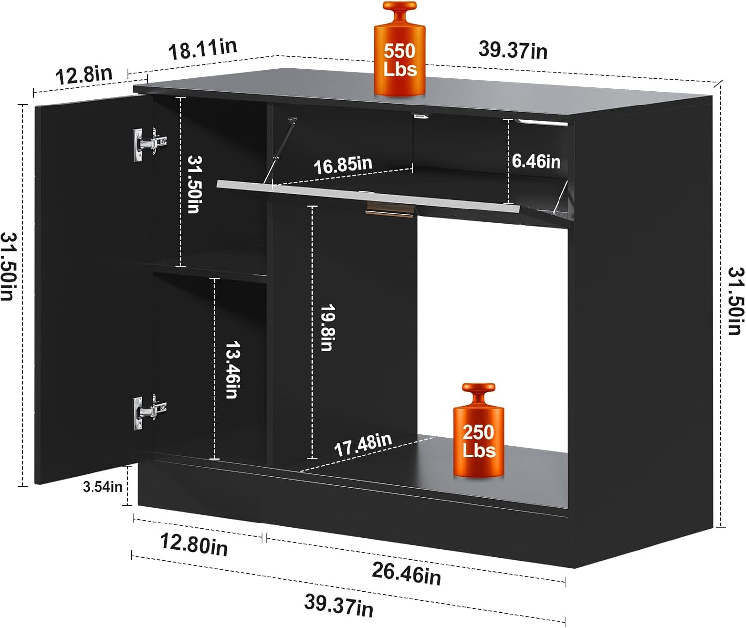 - 【Heavy-Duty 40 Gallon Aquarium Stand】Designed for 40G (39.4"×18.1") tank with weight capacity up to 550 lbs. Sturdy MDF construction ensures safety for large aquariums, terrariums, or reptile tanks. Please measure your tank to ensure a proper fit before purchasing.