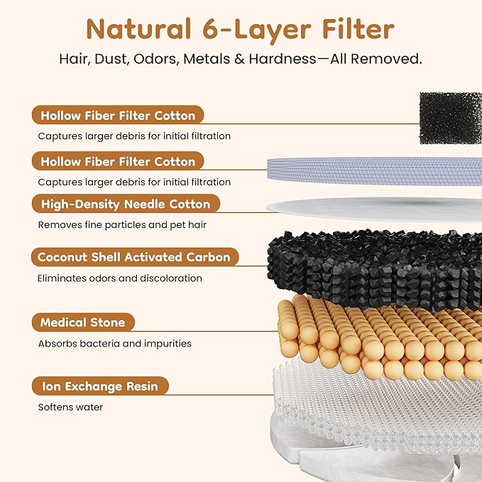 - 1 Piece 6-Stage Filter: A pet fountain with 6-layer filtration ensures clean water. Includes natural filters: activated carbon, ion resin, and more to remove hair, odors, and impurities. The stainless steel water fountain for cats includes replaceable filters to maintain water quality.