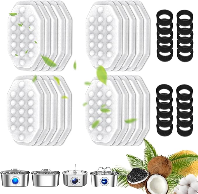 40 Packs for Cat Water Fountain Filters Replacement, Compatible with Neareal 108oz/3.2L Cat Fountain for Drinking Dog Water Dispensers (20 Replacement Water Filter + 20 Pre-Filter Sponges)