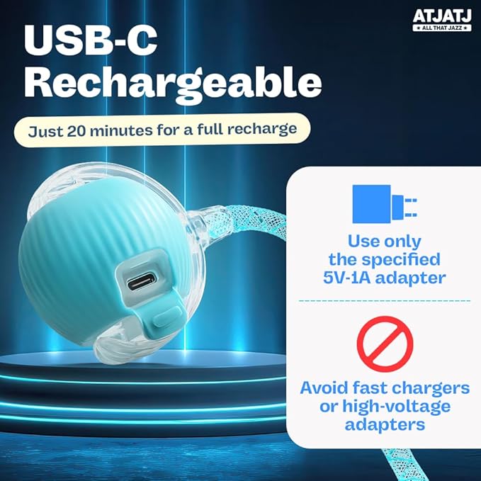 - 📌【 𝗨𝗦𝗕-𝗖 𝗥𝗲𝗰𝗵𝗮𝗿𝗴𝗲𝗮𝗯𝗹𝗲 】: No more battery replacements! Just charge for 20 minutes, this rechargeable pet toy keeps your cat entertained for hours. The removable C-buckle makes cleaning easy by removing tangled hairs.