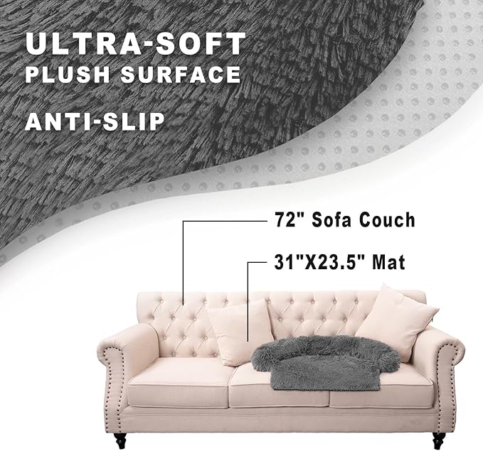 Calming Dogs/Cats Bed Mats, Dog Pad Washable Removable Couch Cover, Plush Long Fur Mat for Pets, Waterproof Lining, Perfect for Small, Medium and Large Dogs and Cats (Dark Gray, 31"x23")