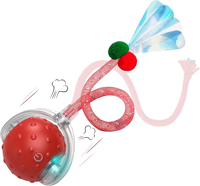 Interactive Cat Toy – Motion Activated Rolling Ball with LED Lights & 3 Play Modes & Two Different Tails - Best Toy for Indoor Cats & Kittens to Stay Active and Stimulate Hunting Instinct (Red)
